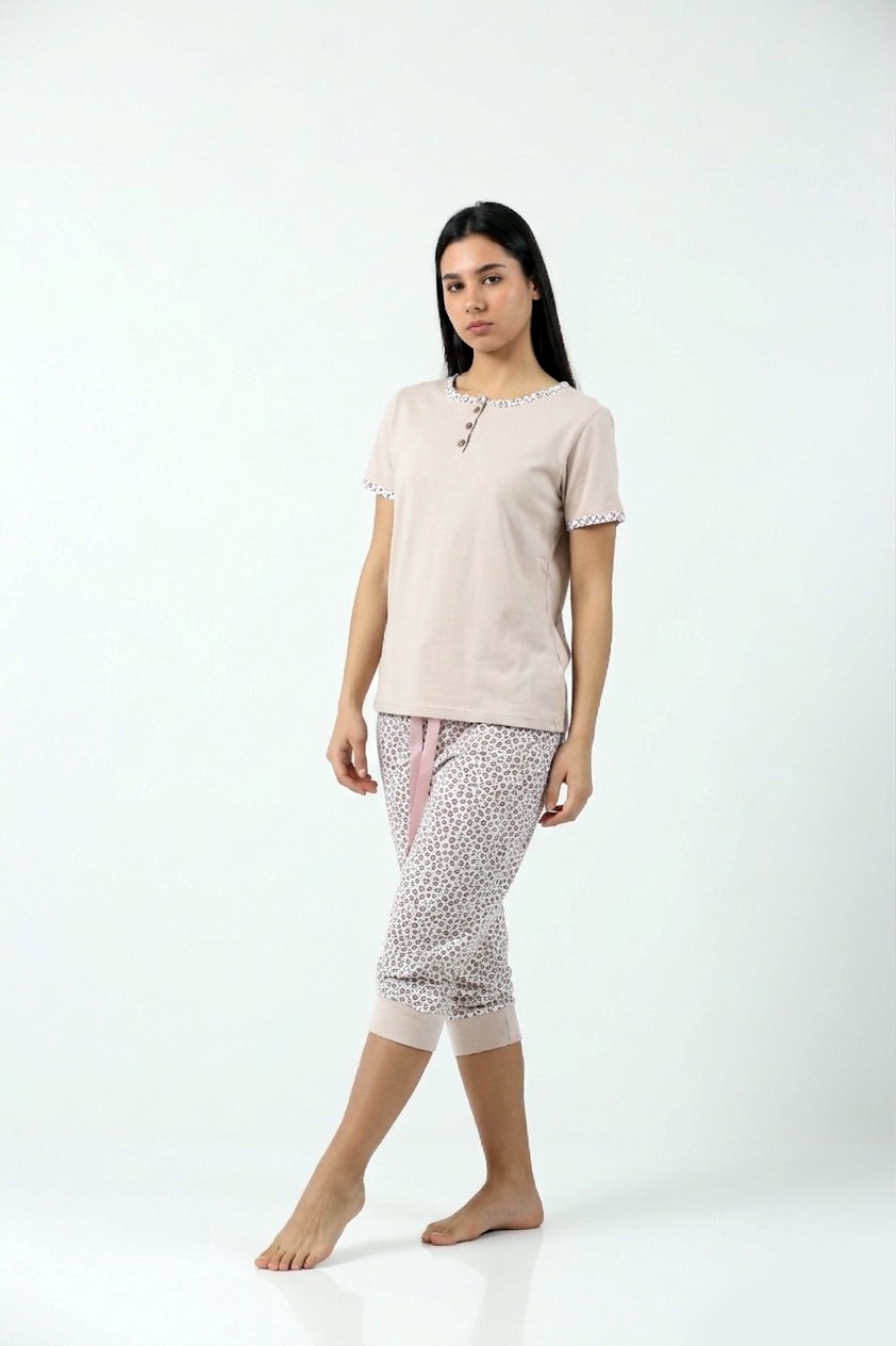 Ženski pamučni bebi dol art. 1200, majica kratkih rukava i 3/4 pantalone. 100% pamuk, pranje 60°C. Dostupan u više boja. Veličine M–XXL. Lotos Arilje.