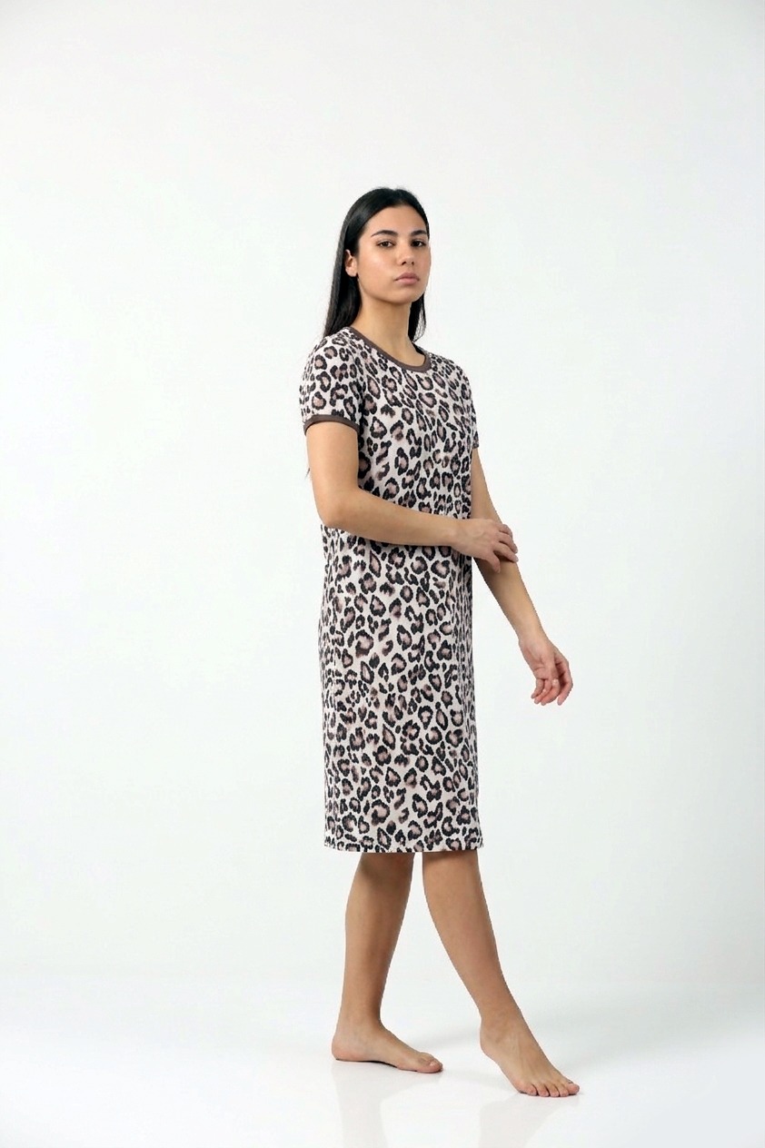 Ženska pamučna spavaćica art. 860, kratki rukav, midi dužina. 100% pamuk, pranje 60°C. Dostupna u više boja i printova. Veličine M–XXL. Lotos Arilje.